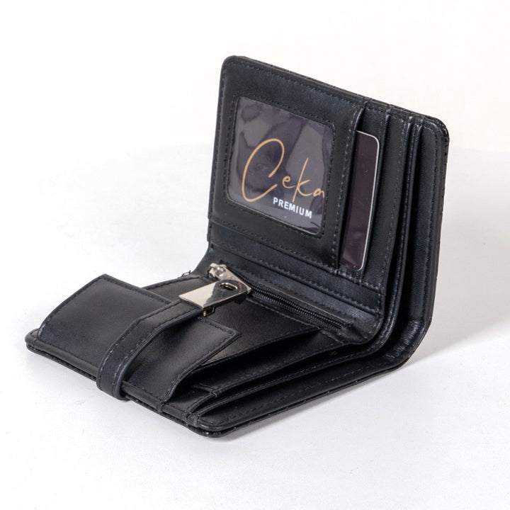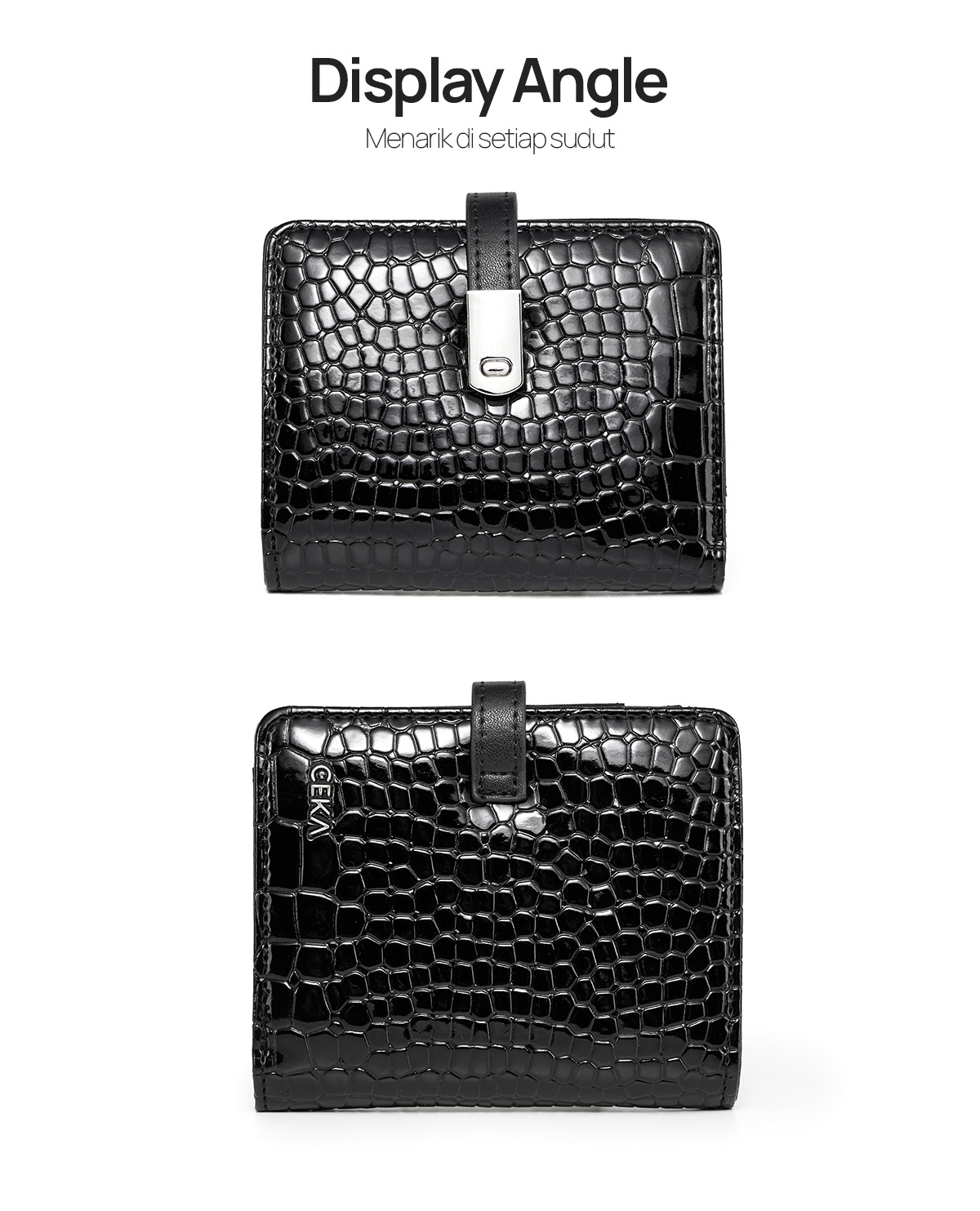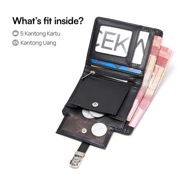 - Desain Lipat : Desain dompet yang lipat membuatnya lebih ringkas dan mudah dibawa, sambil tetap menyediakan ruang yang cukup untuk semua kebutuhan Anda.
