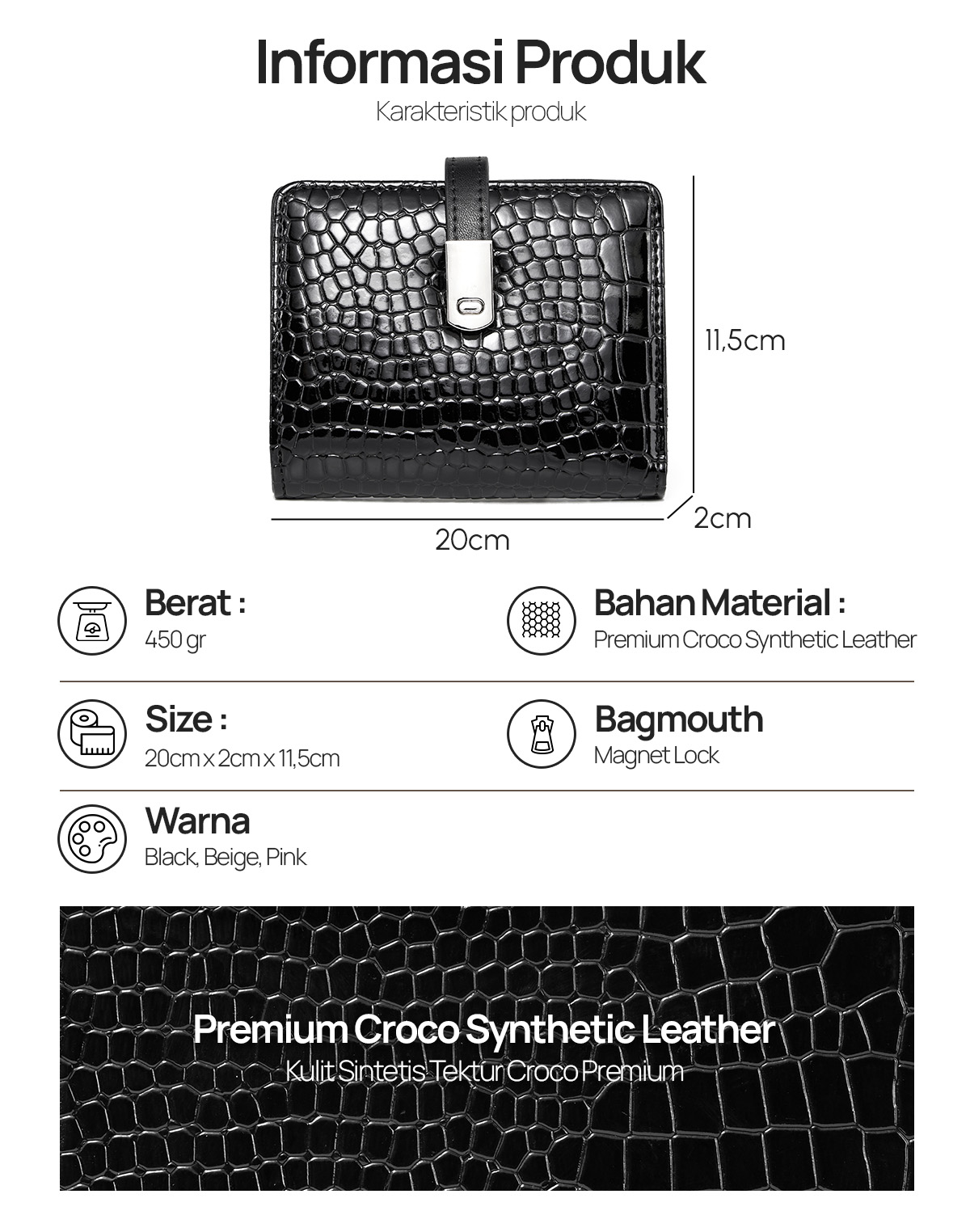 Material : Kulit Sintetis Premium (Tekstur Kulit Croco)