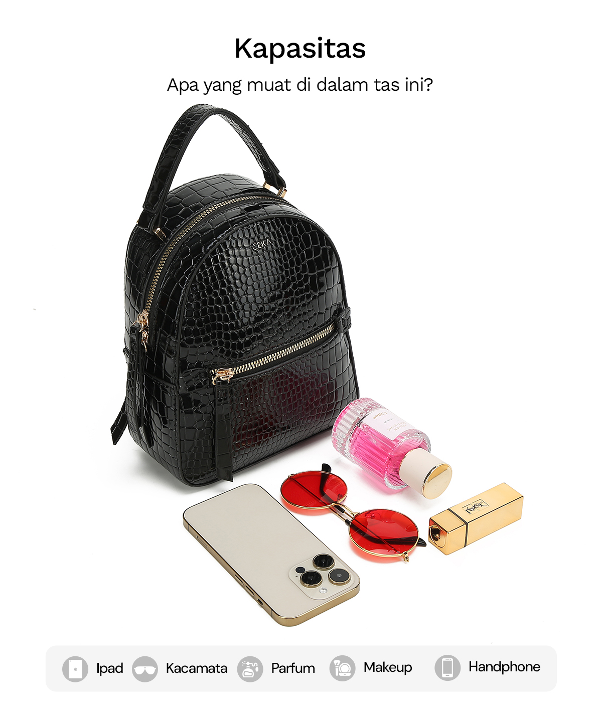Kompartemen yang luas : Terdapat 1 ruang yang cukup luas untuk menyimpan handphone, parfum, dompet, dan make up