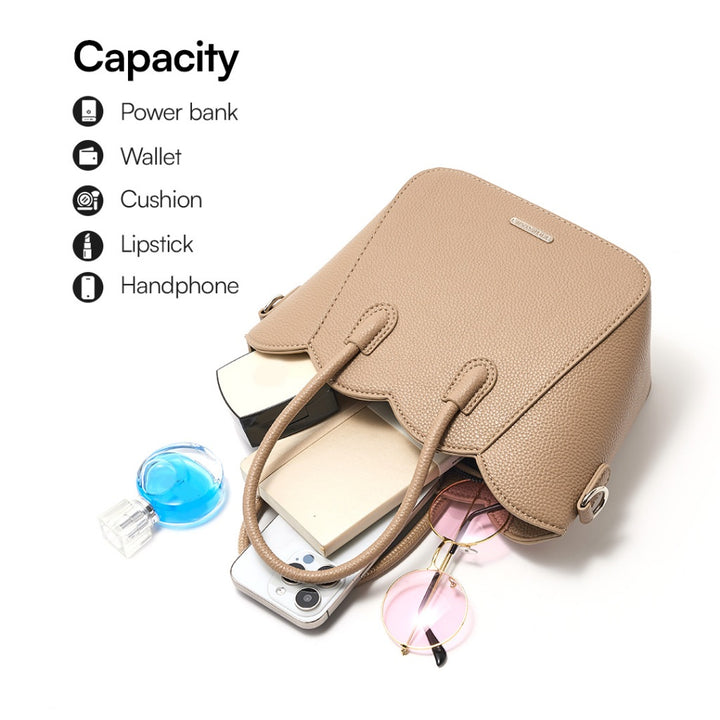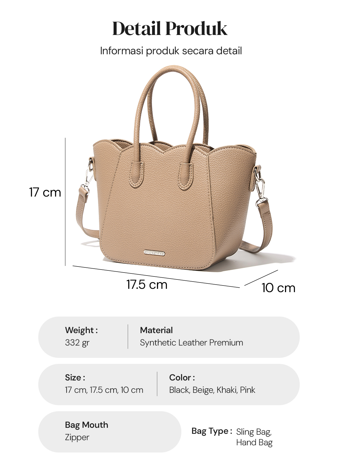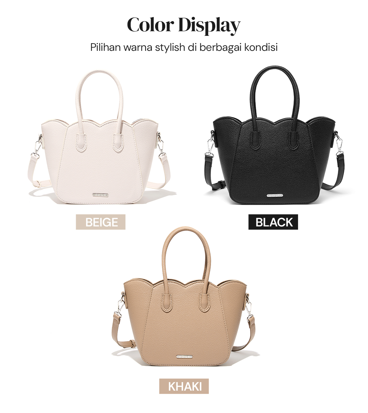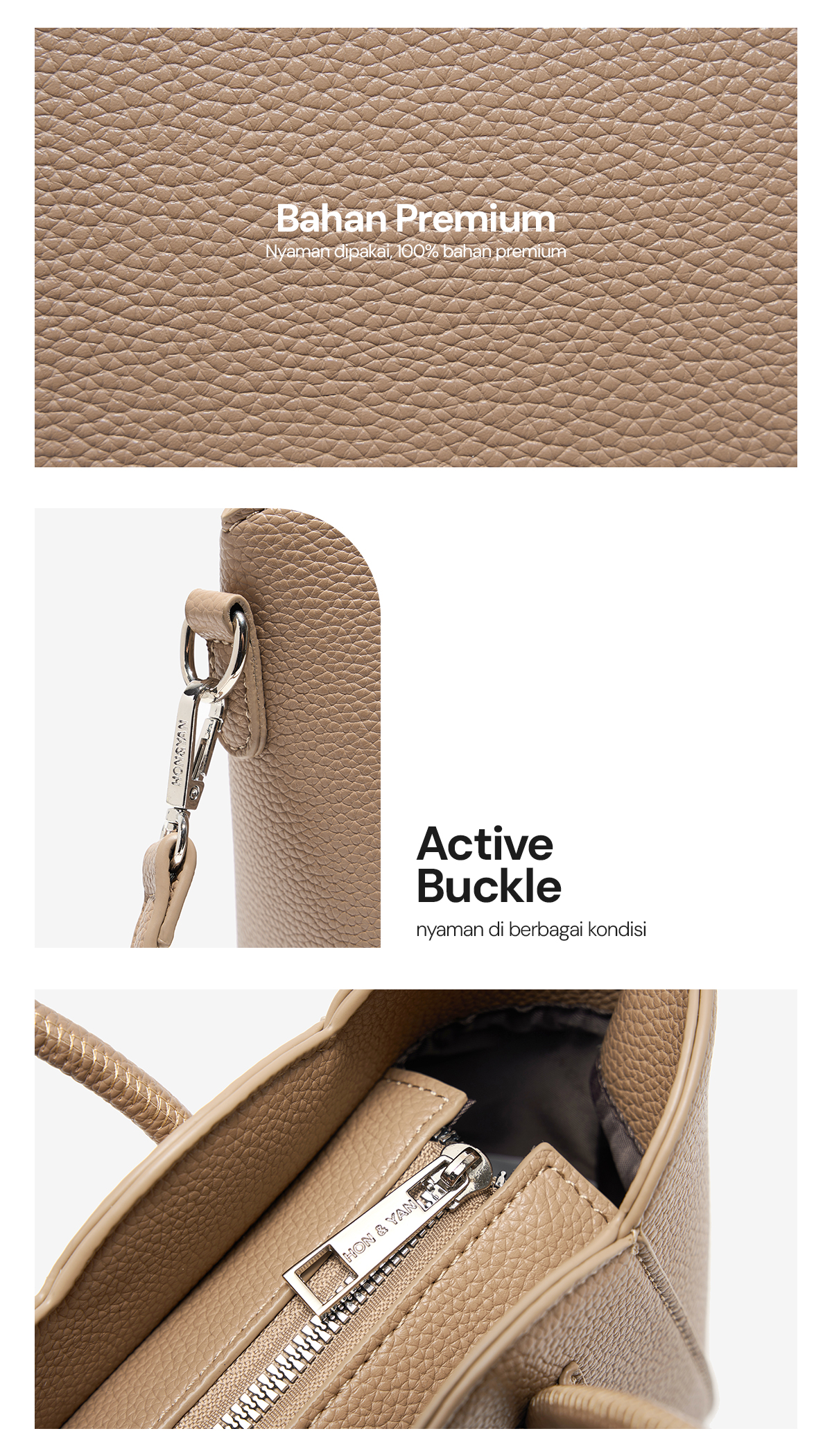 Design Modern : Terbuat dari bahan kulit sintetis berkualitas tinggi, tas ini menampilkan design yang elegan dan simple.
