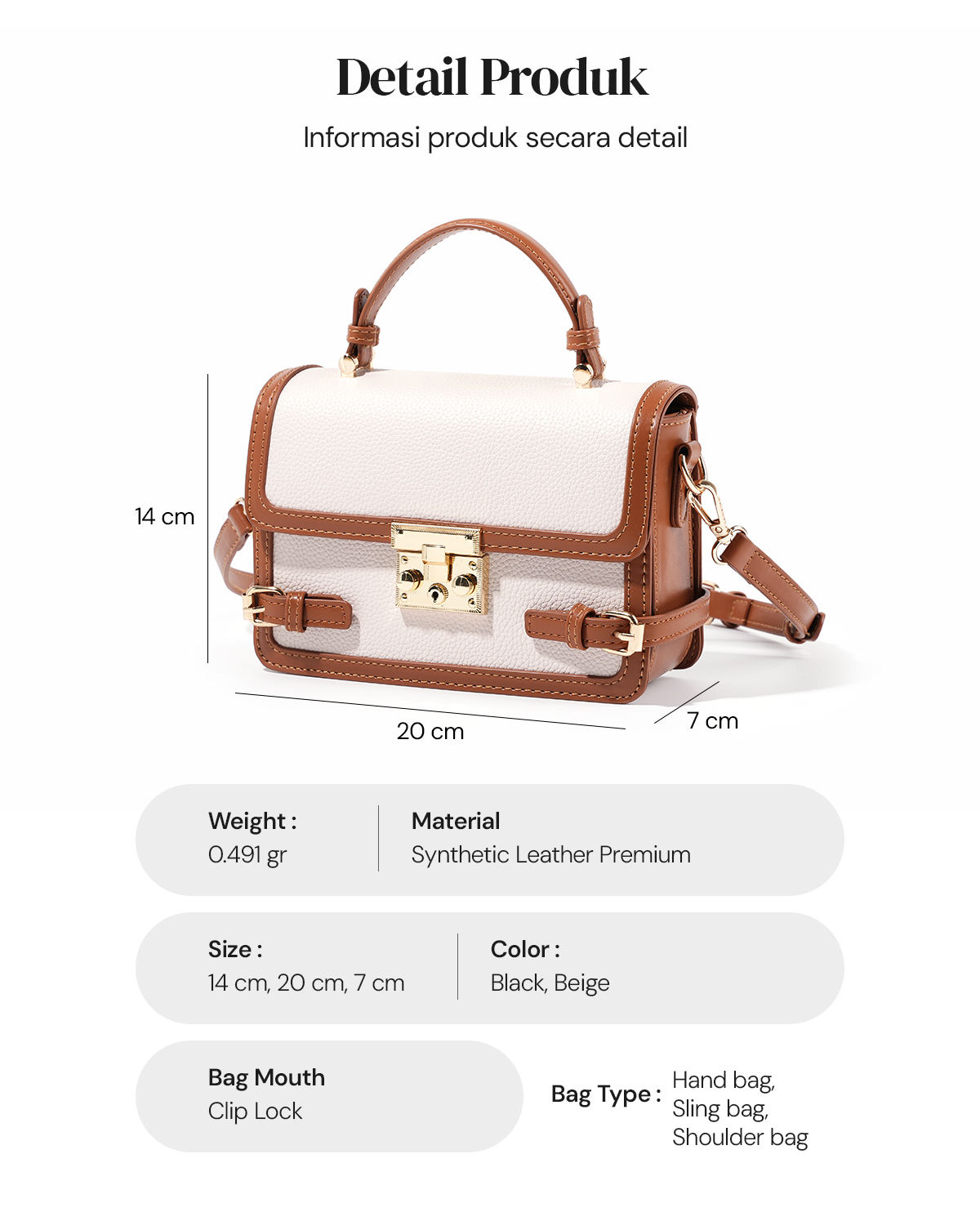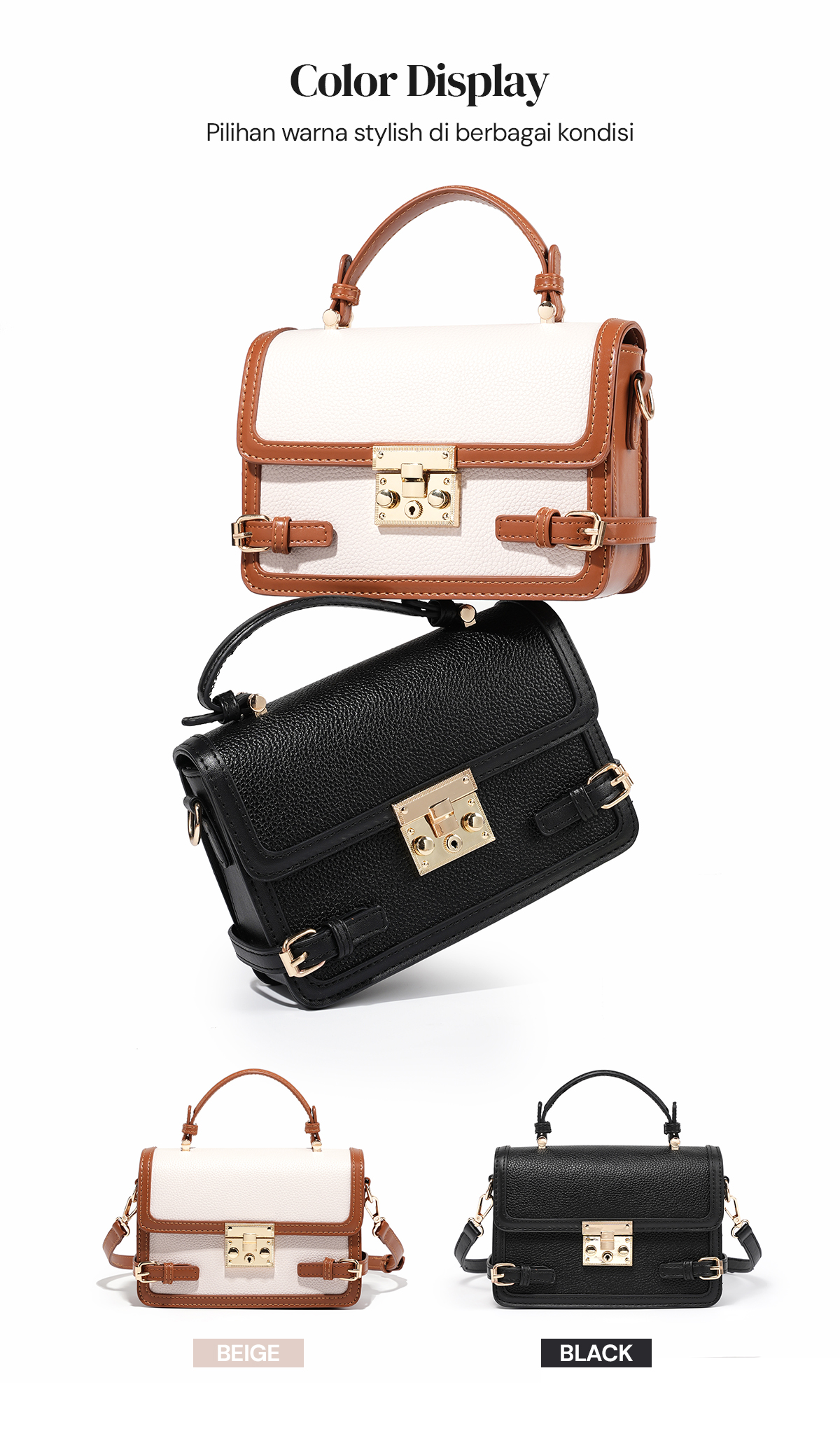 Design Modern : Terbuat dari bahan kulit sintetis berkualitas tinggi, tas ini menampilkan design yang elegant dan simple.