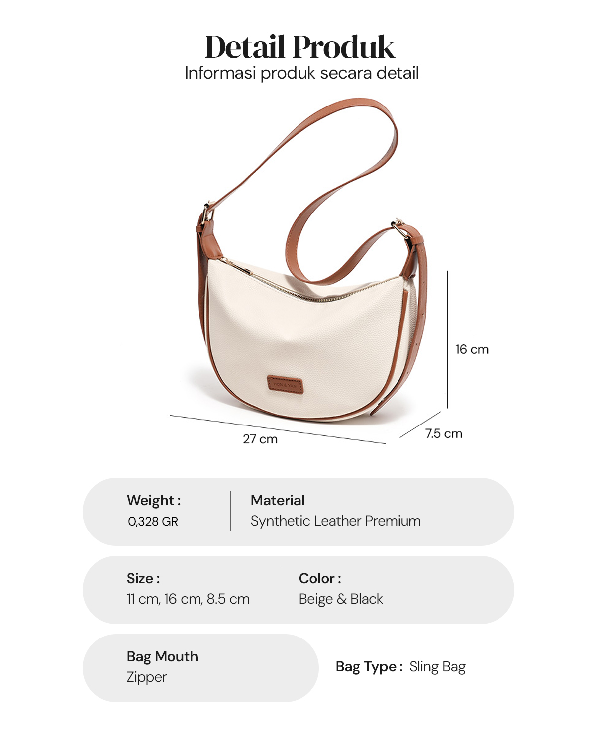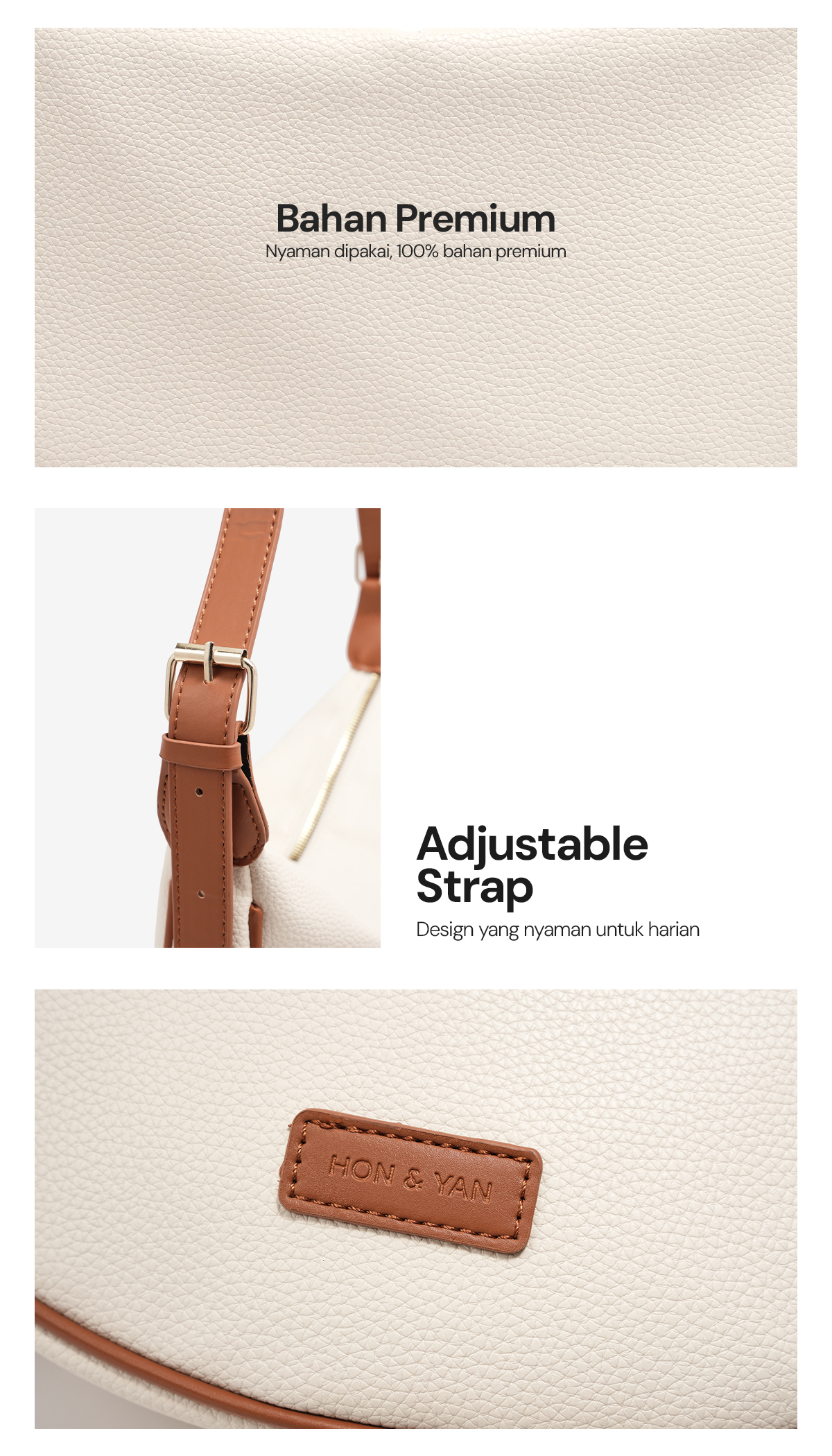Design Modern : Terbuat dari bahan kulit sintetis berkualitas tinggi, tas ini menampilkan design yang elegant dan simple.
