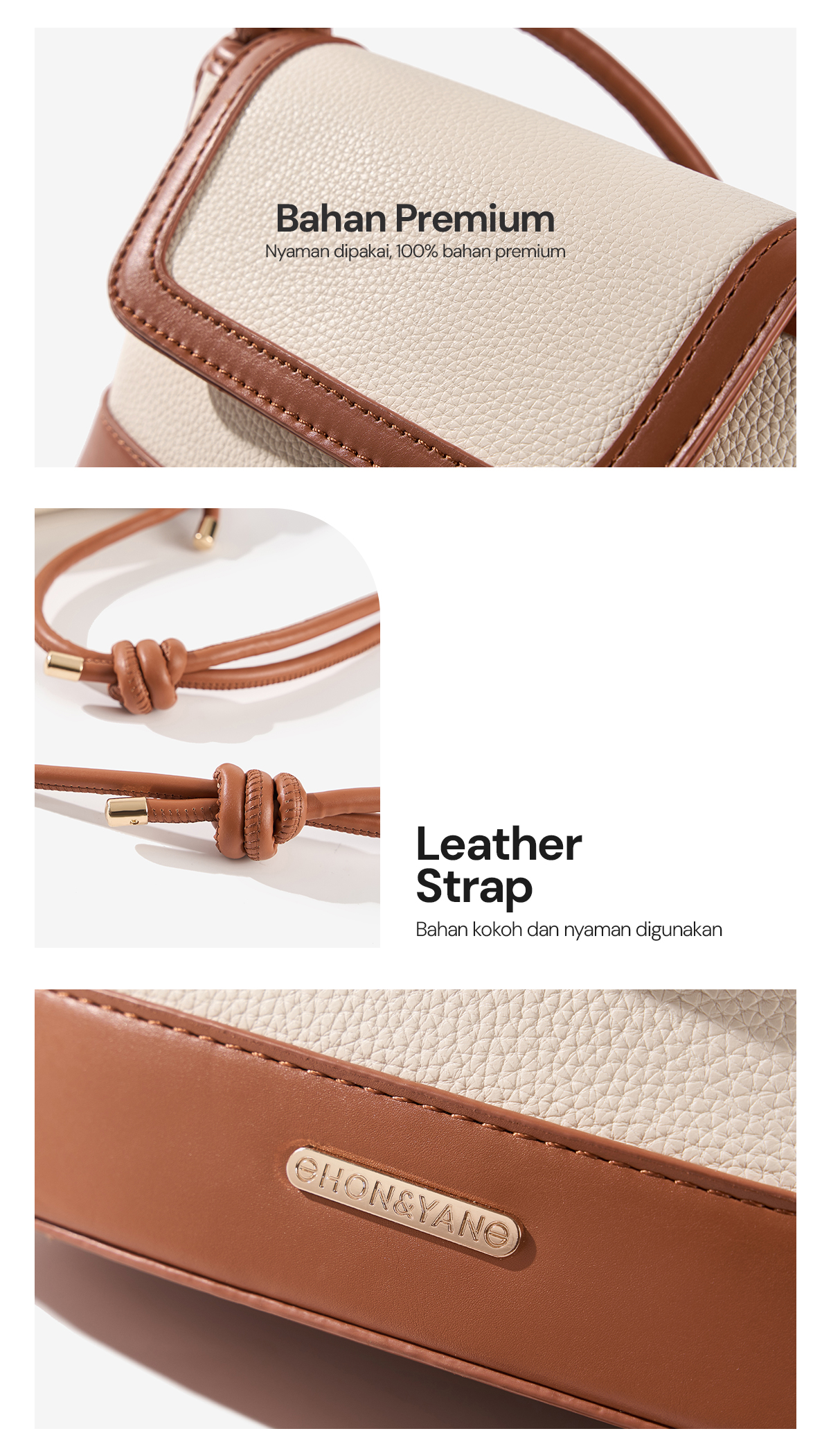 Design Modern : Terbuat dari bahan kulit sintetis berkualitas tinggi, tas ini menampilkan design yang elegant dan simple.