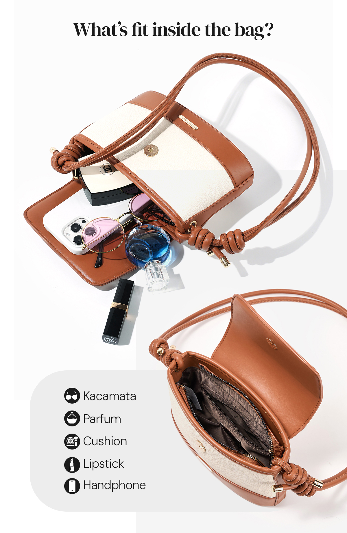 Kompartment Utama yang luas : Dilengkapi dengan Kompartment Utama yang cukup besar untuk menyimpan handphone, parfume, atau barang-barang harian lainnya.