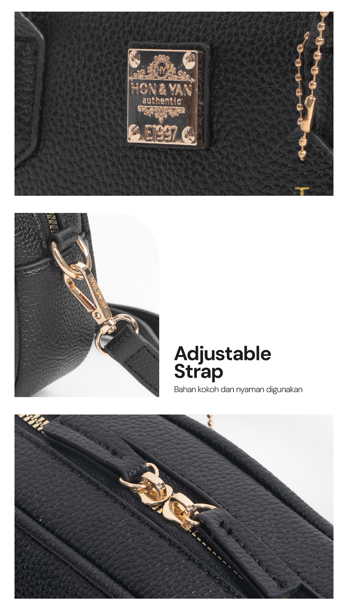 Design Modern : Terbuat dari bahan kulit sintetis berkualitas tinggi, tas ini menampilkan design yang elegant dan simple.