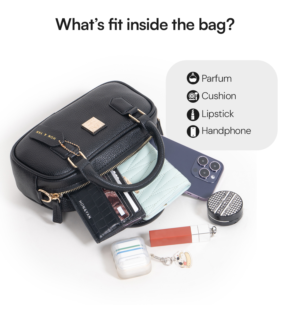 Kompartment Utama yang luas : Dilengkapi dengan Kompartment Utama yang cukup besar untuk menyimpan handphone, parfume, atau barang-barang harian lainnya.