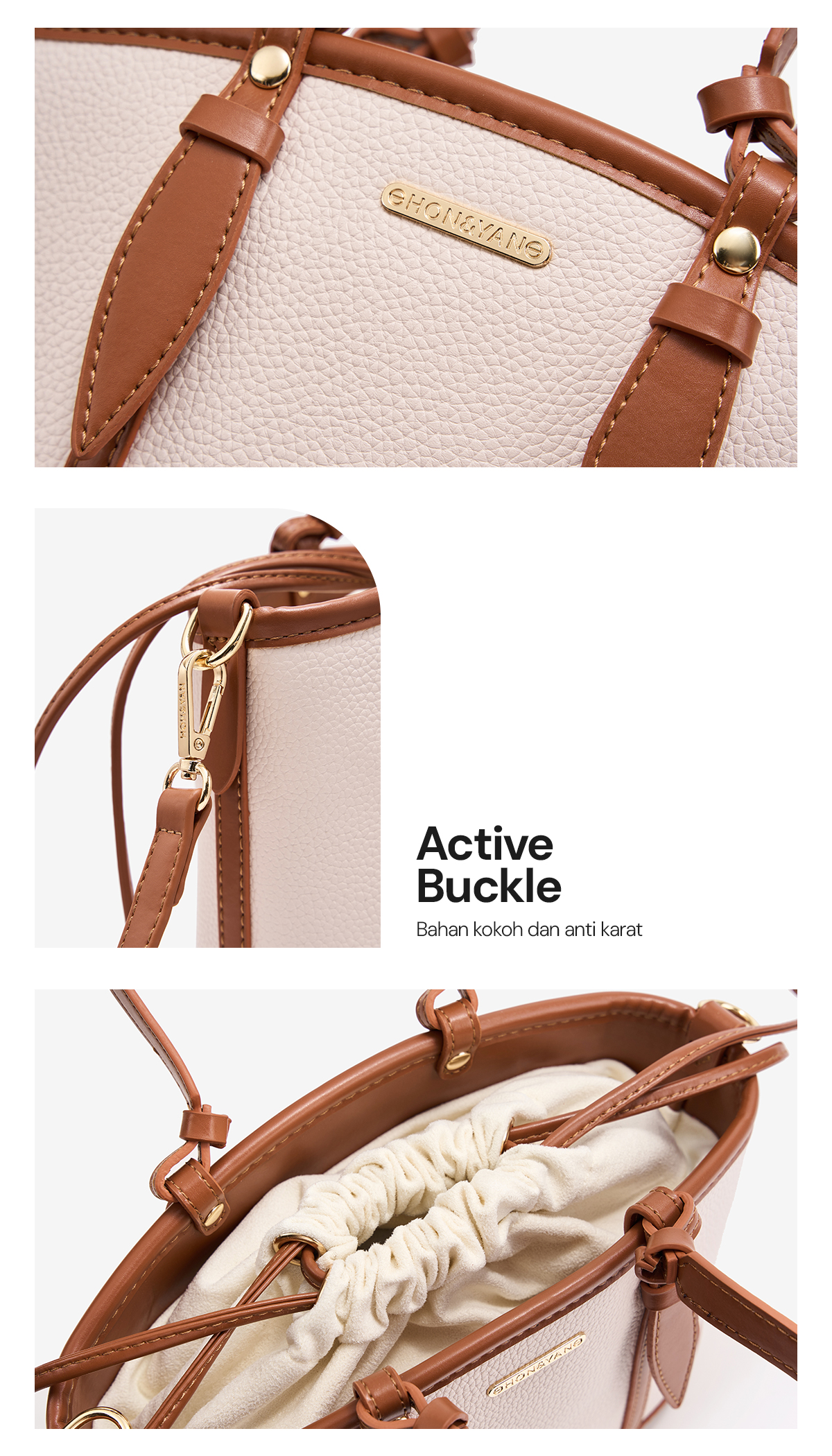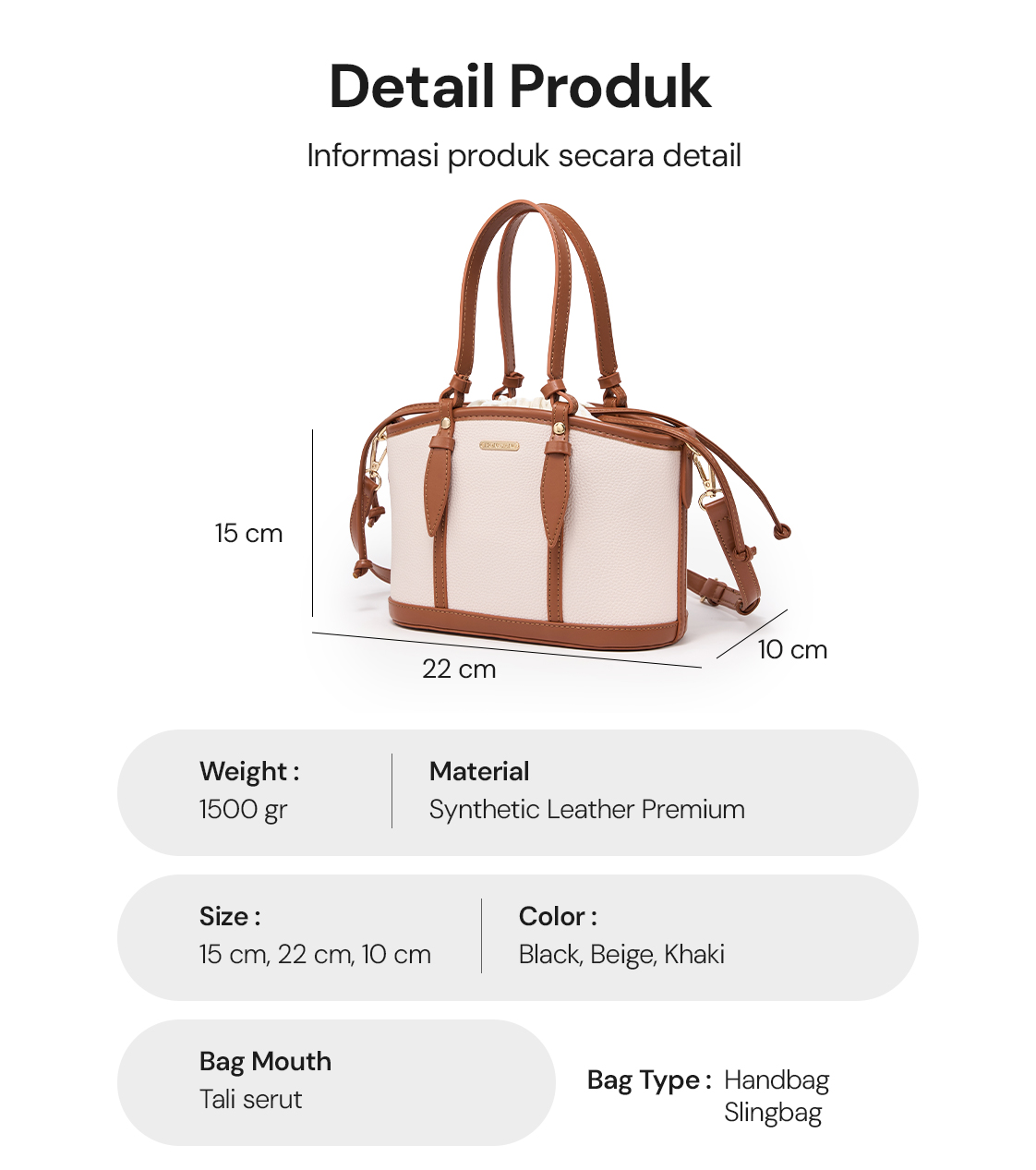 Design Modern : Terbuat dari bahan kulit sintetis berkualitas tinggi, tas ini menampilkan design yang elegant dan simple.