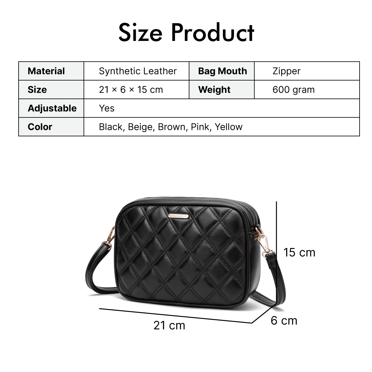 Design Modern : Terbuat dari bahan kulit sintetis berkualitas tinggi, tas ini menampilkan design yang elegant dan simple.