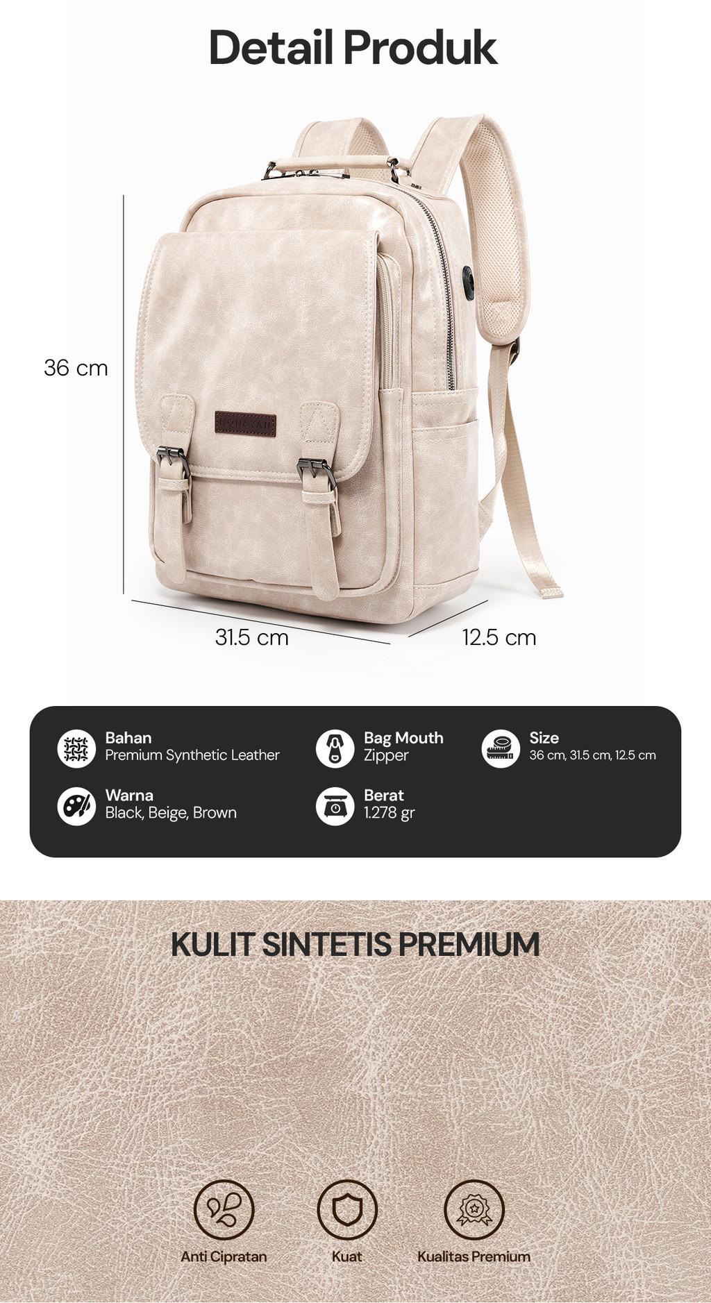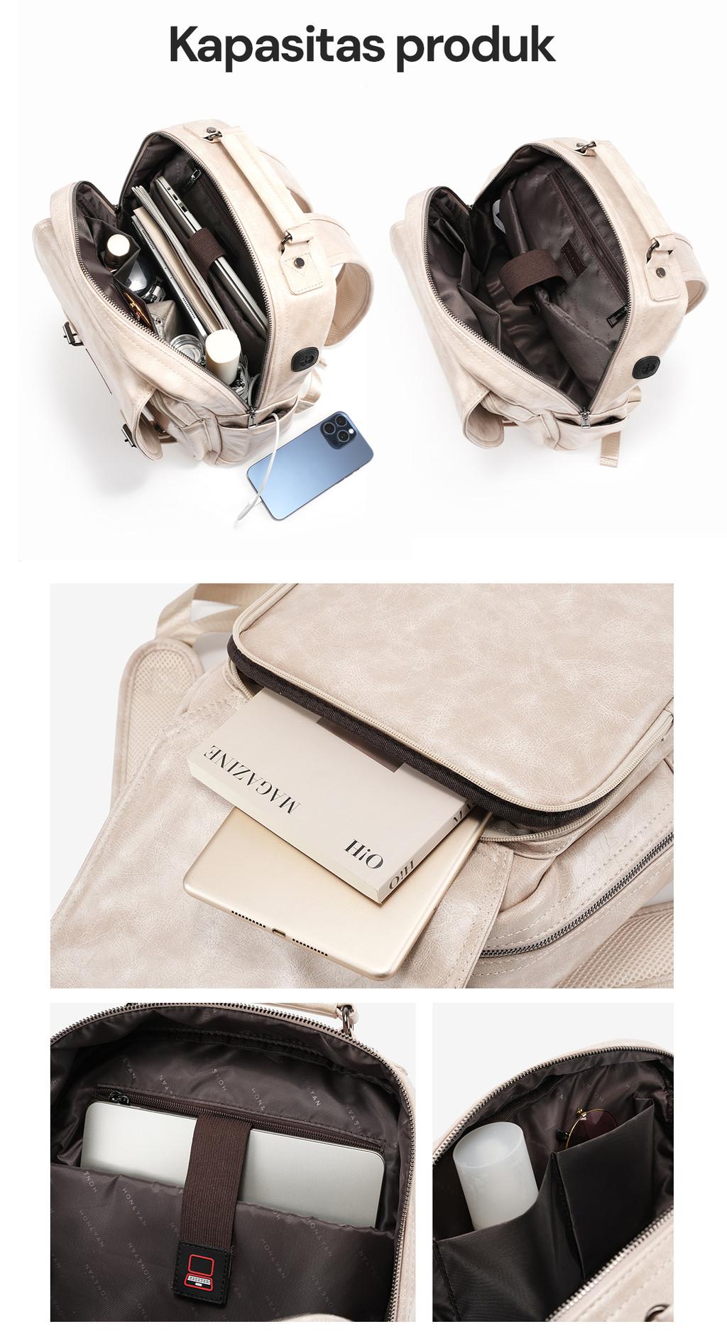 Kantong Tersembunyi : dilengkapi dengan kompartemen khusus untuk laptop dan saku organizer untuk menyimpan barang kecil berharga lainnya.