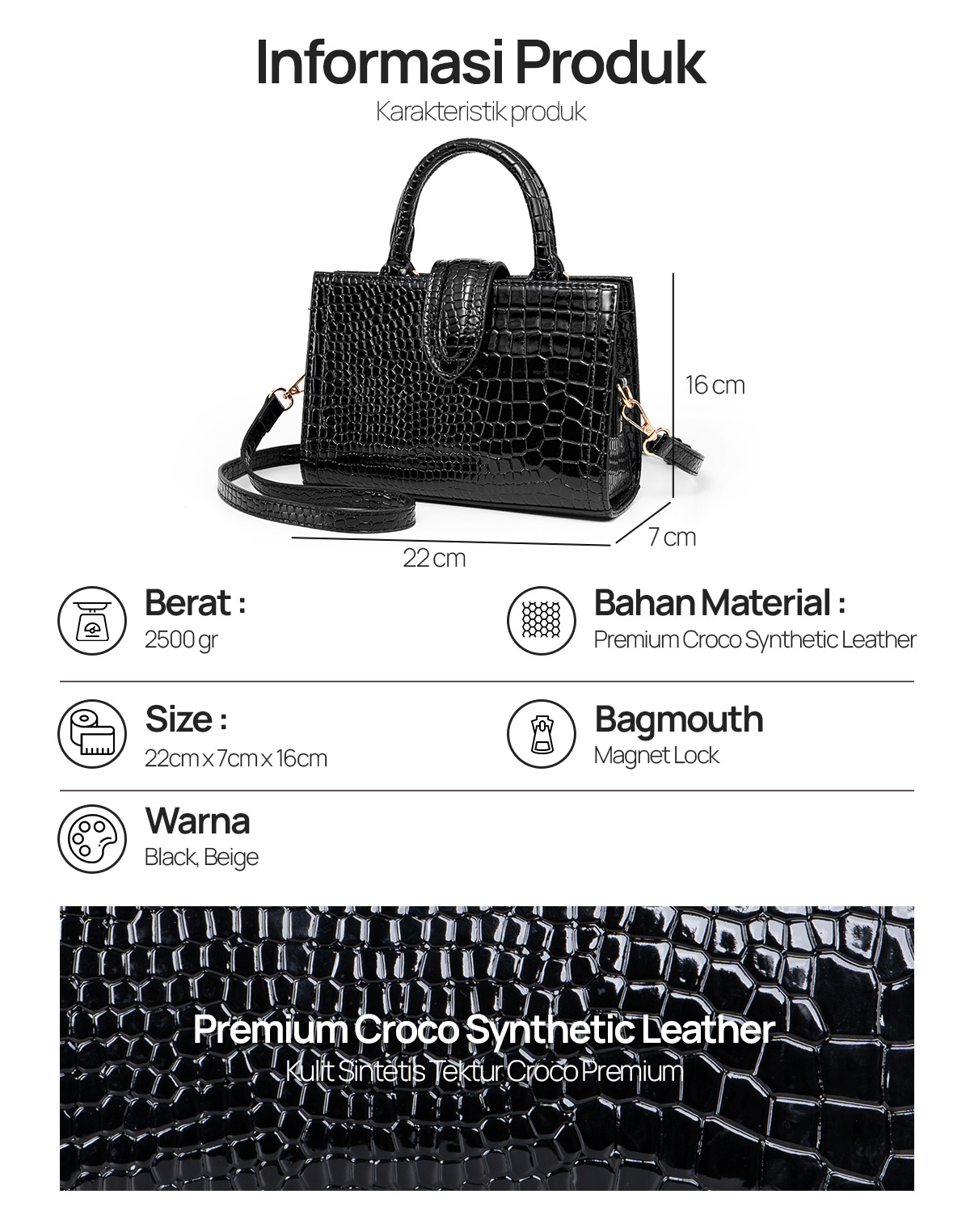 Material : Kulit Sintetis Premium (Tekstur Kulit Croco)