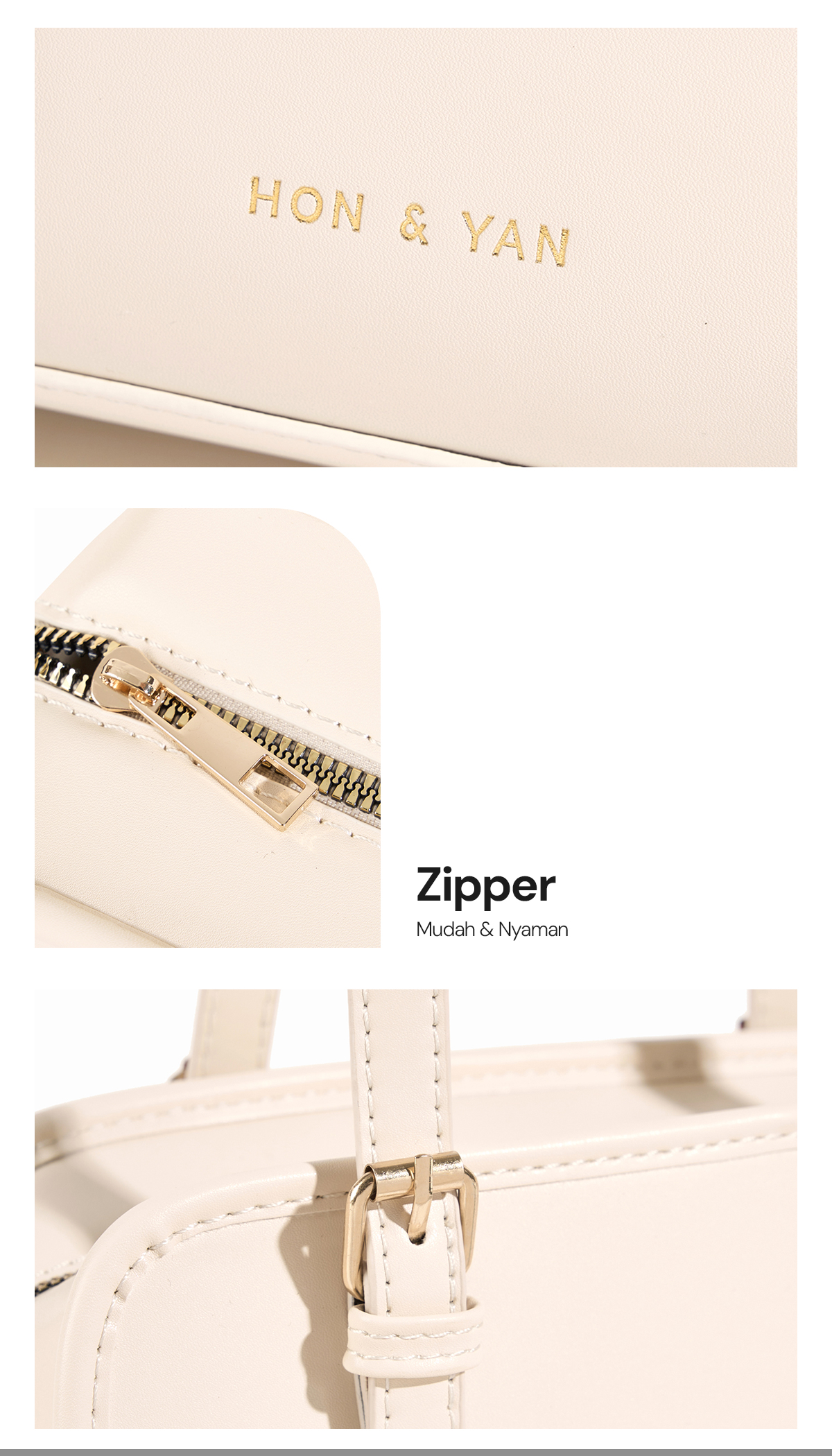 Design Modern : Terbuat dari bahan kulit sintetis berkualitas tinggi, tas ini menampilkan design yang elegant dan simple.