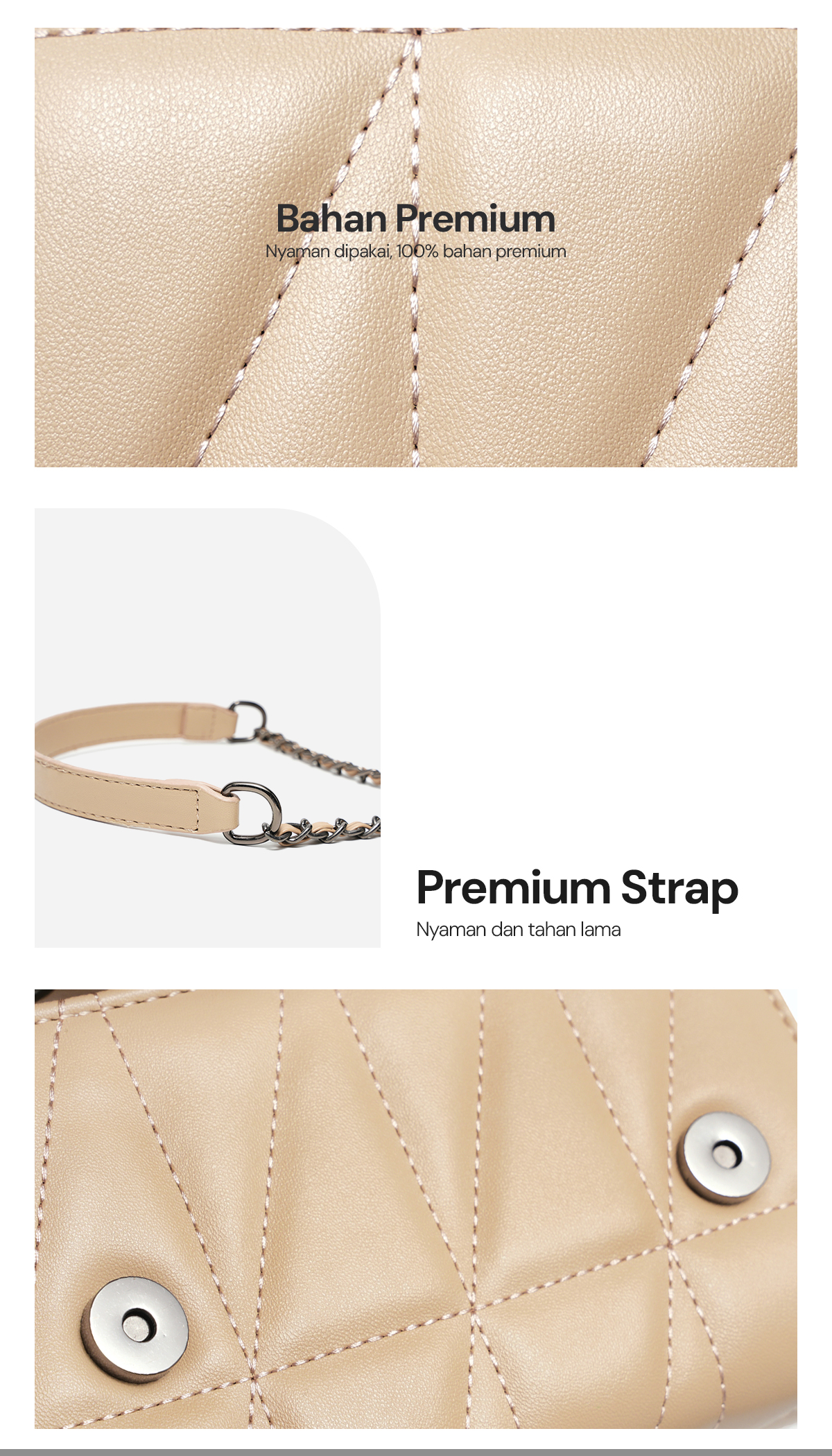 Design Modern : Terbuat dari bahan kulit sintetis berkualitas tinggi, tas ini menampilkan design yang elegant dan simple.