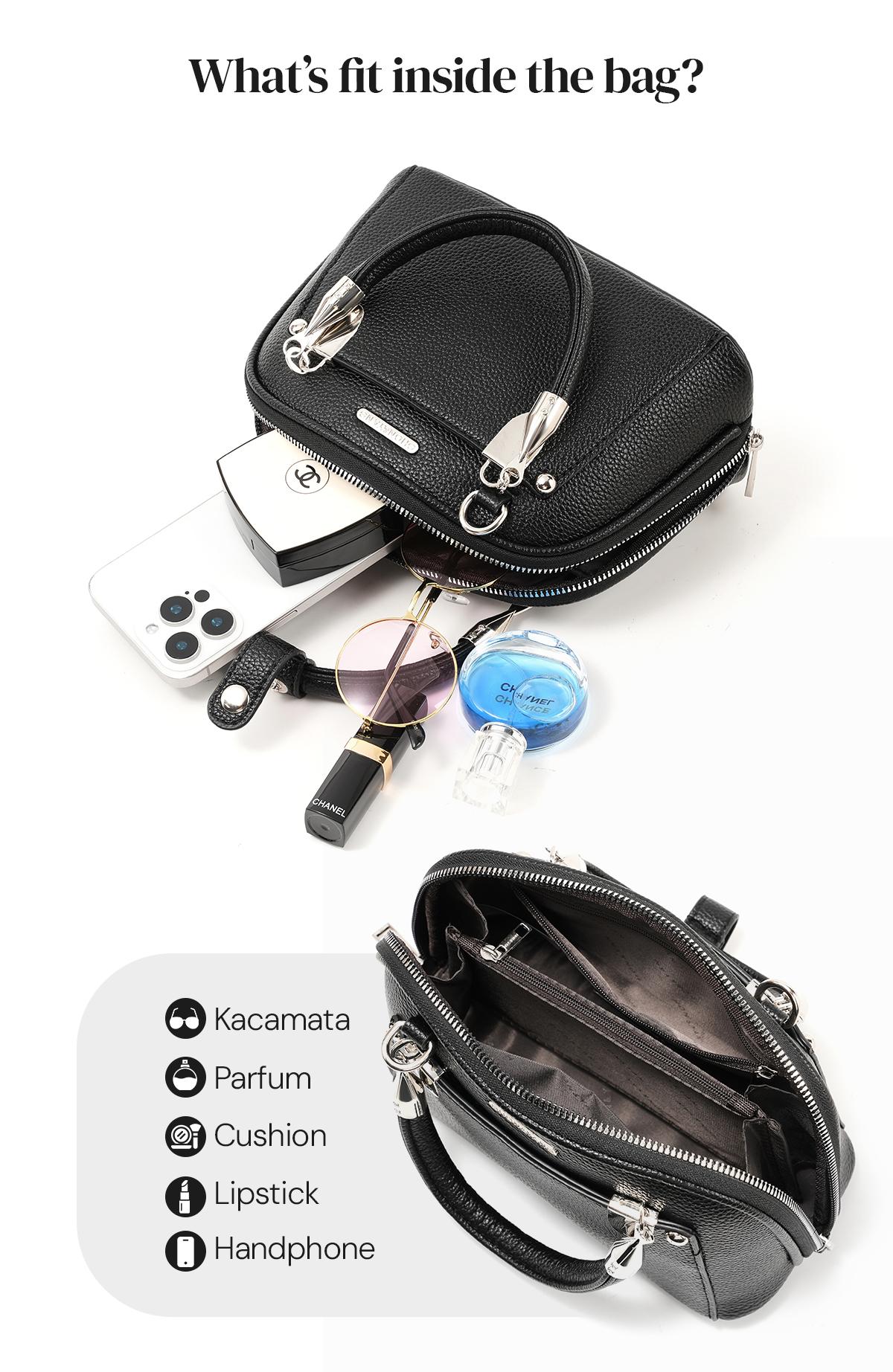 Kompartment Utama yang luas : Dilengkapi dengan Kompartment Utama yang cukup besar untuk menyimpan handphone, parfume, atau barang-barang harian lainnya.