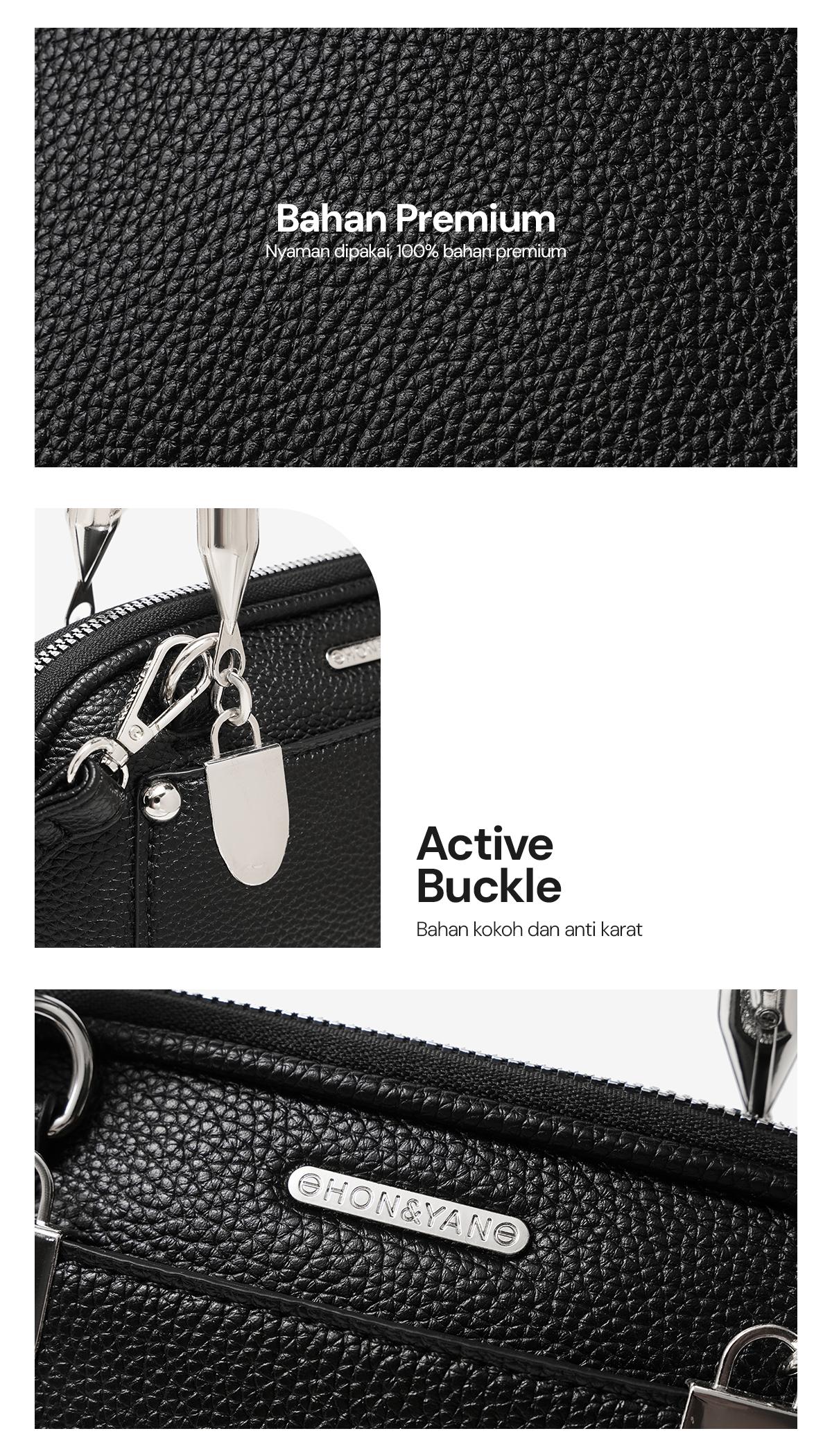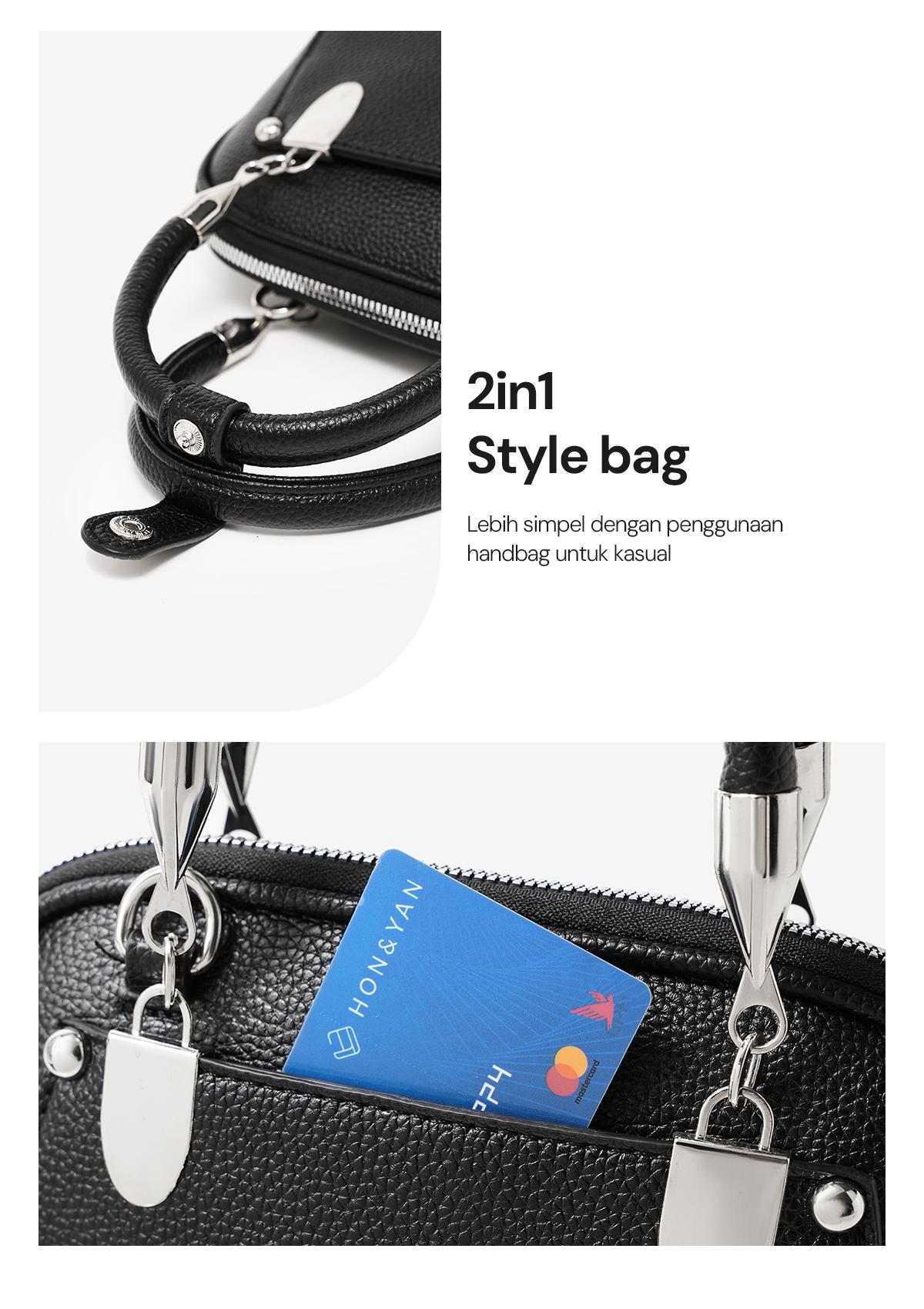 Design Modern : Terbuat dari bahan kulit sintetis berkualitas tinggi, tas ini menampilkan design yang elegant dan simple.