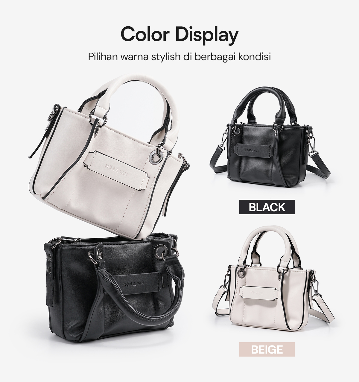 Design Modern : Terbuat dari bahan kulit sintetis berkualitas tinggi, tas ini menampilkan design yang elegant dan simple.