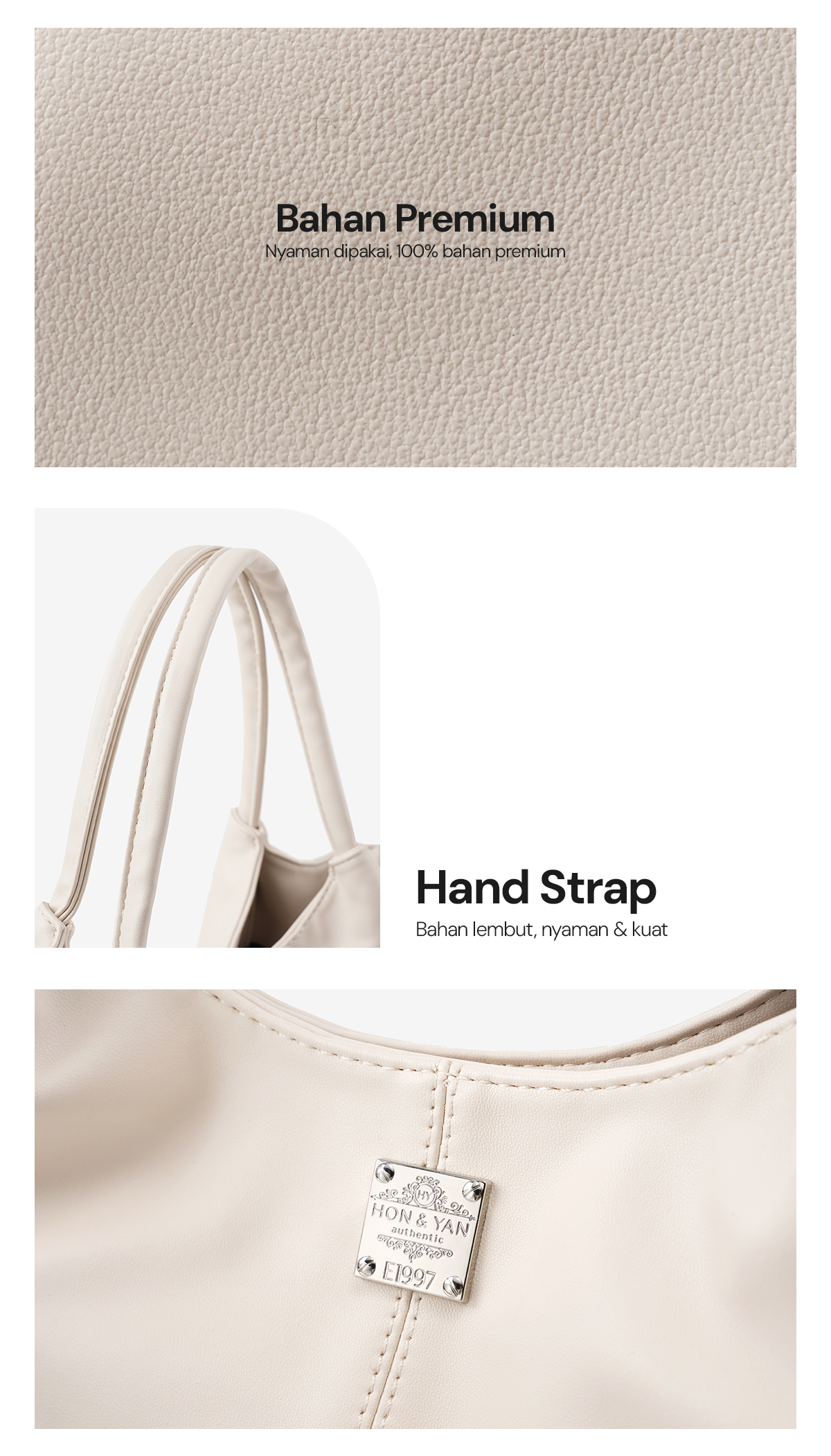 Design Modern : Terbuat dari bahan kulit sintetis berkualitas tinggi, tas ini menampilkan design yang elegant dan simple.