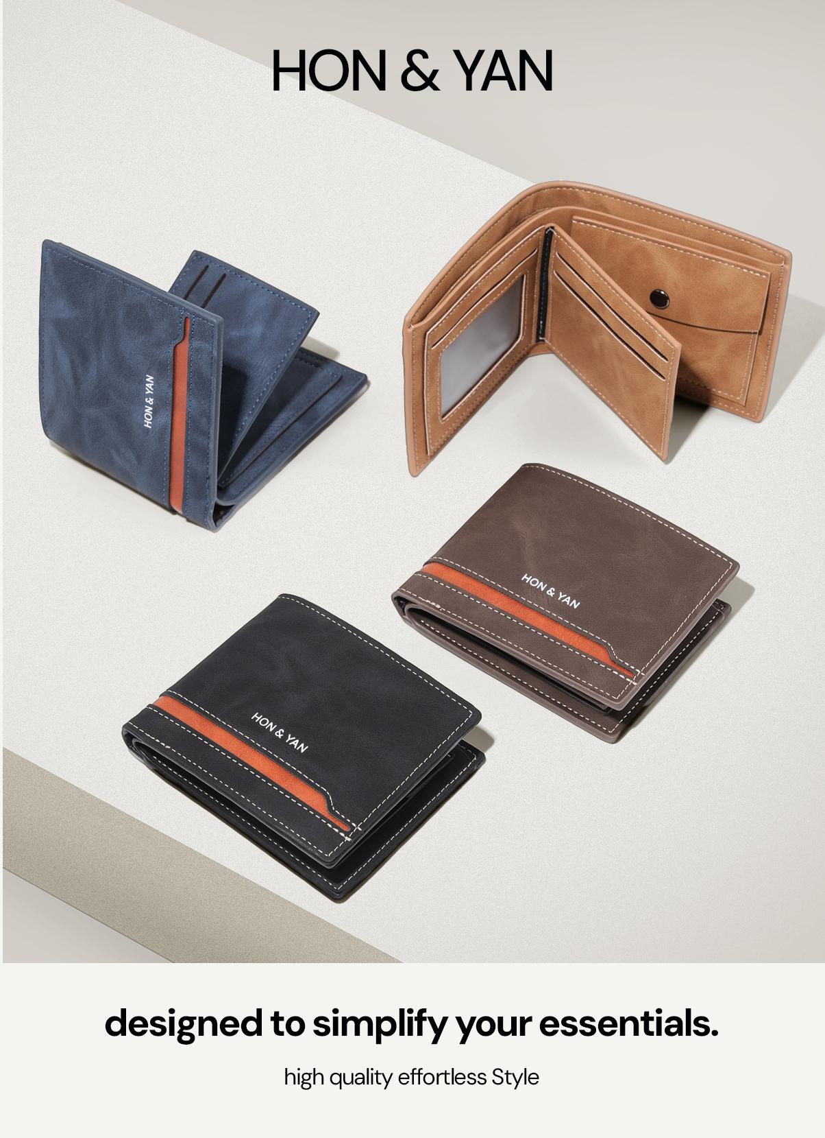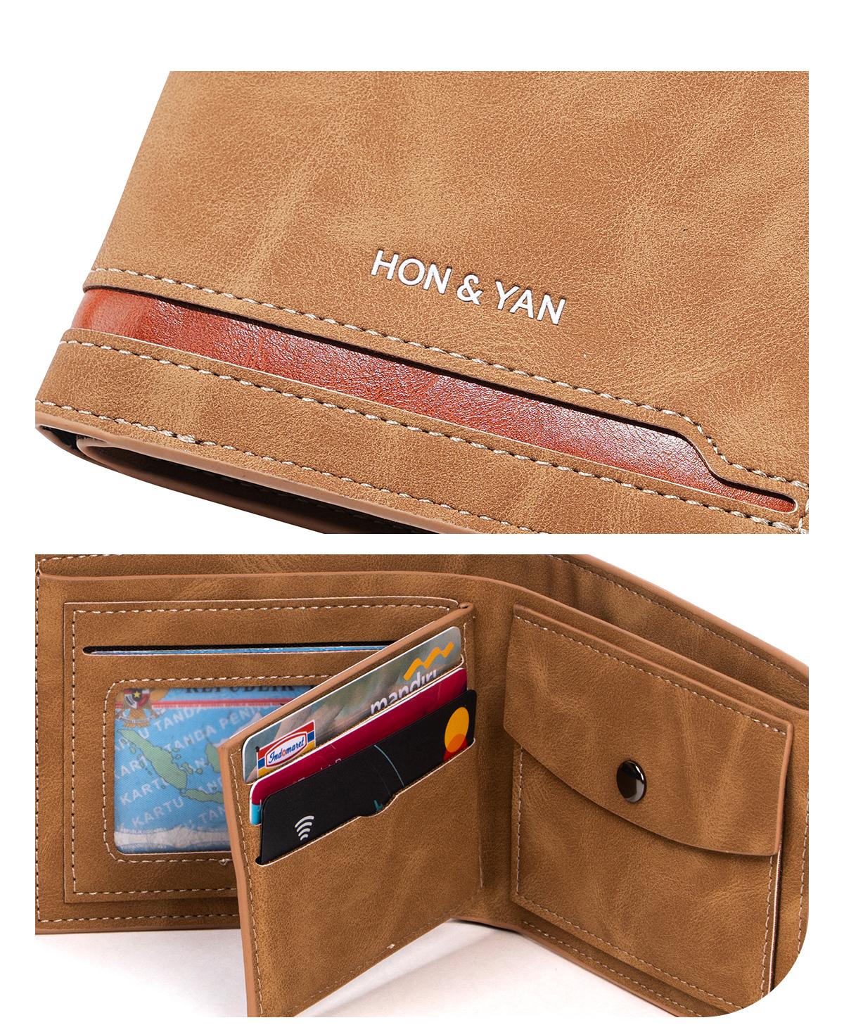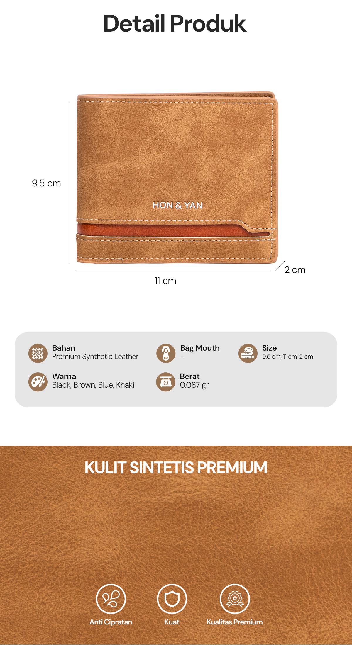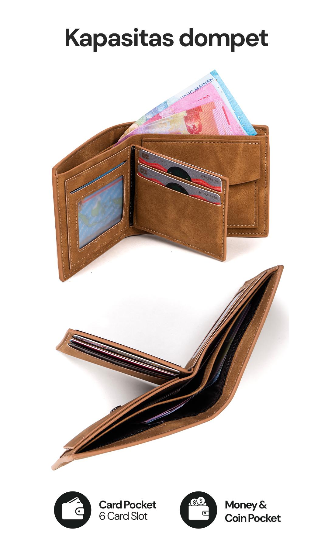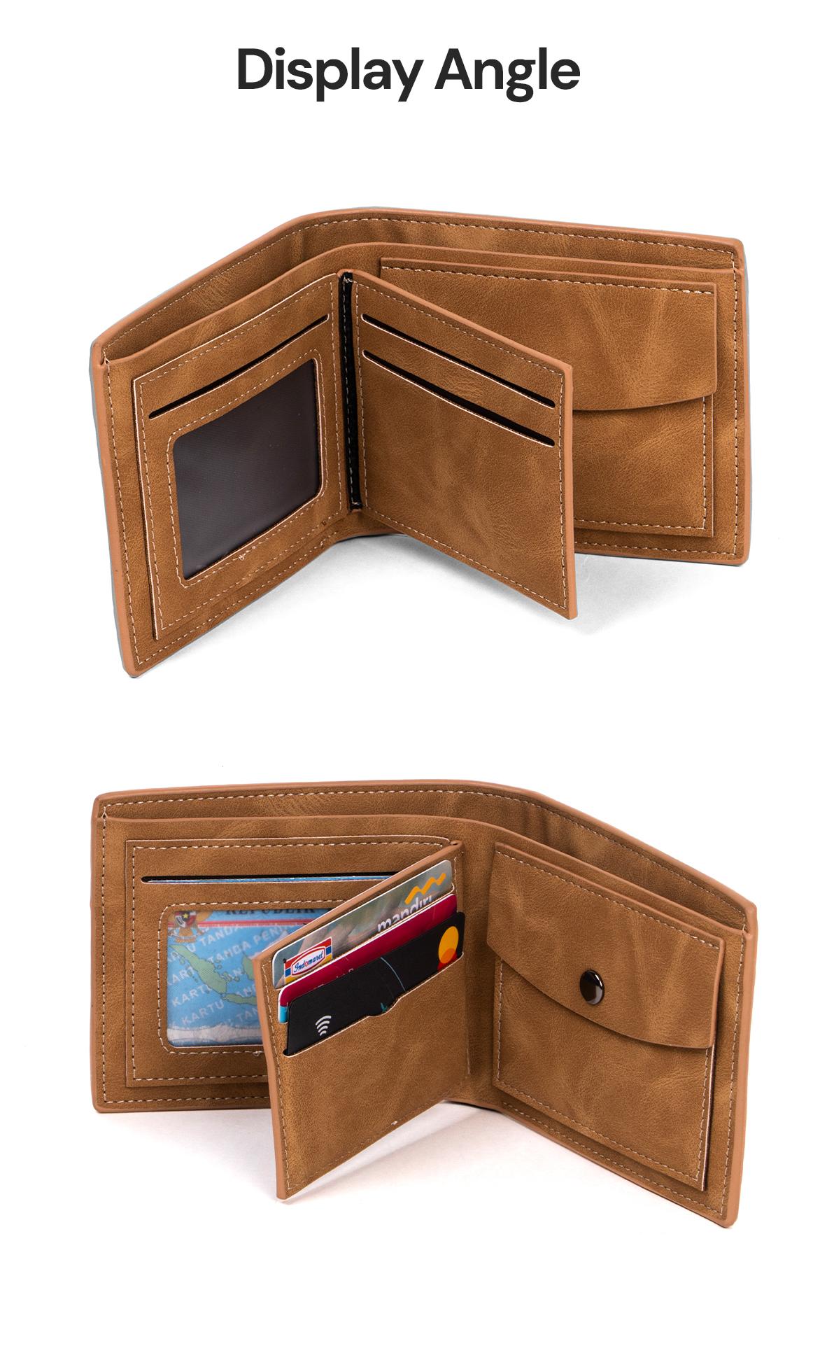 Design Modern : Terbuat dari bahan kulit sintetis berkualitas tinggi, dompet ini menampilkan design yang bagus dan simple.